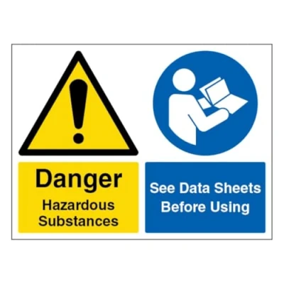 V Safety Danger Hazardous Substances/See Data Sheets Landscape 400 x 300 mm 1mm Rigid Plastic Sign
