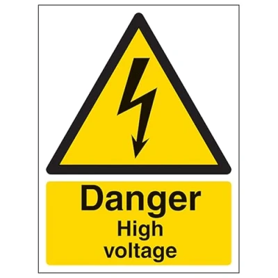 V Safety Danger High Voltage Portrait 210 x 297 mm (A4) Glow In The Dark Self Adhesive Vinyl Sign
