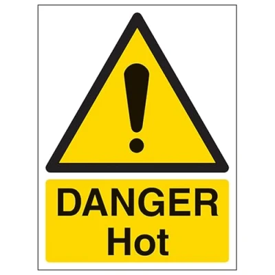 V Safety Danger Hot Portrait 200 x 300 mm Glow In The Dark Self Adhesive Vinyl Sign