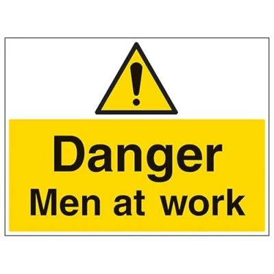 V Safety Danger Men At Work Large Landscape 400 x 300 mm 2mm Rigid Plastic Sign
