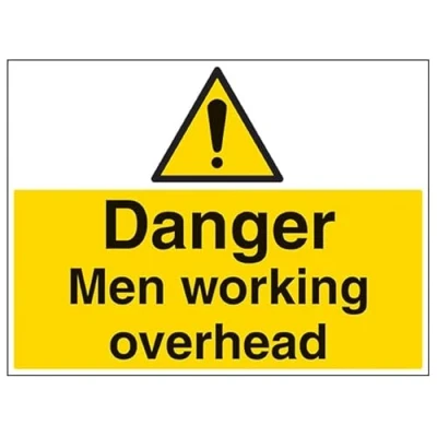 V Safety Danger men working overhead 600x450mm Self Adhesive Vinyl Sign