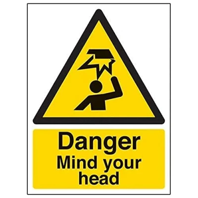 Helps to fulfil legal obligations to inform employees, visitors and the general public of potential hazards as per Health and Safety (Safety Signs & Signals) Regulations 2022 Conforms to EN ISO 7010: 2012 - Warning signs feature a triangular symbol with a black pictogram and yellow background occupying at least 50% of the total sign area Portrait Orientation. Sign reads "Danger. Mind Your Head" Printed on strong 2mm thick white High Impact Polystyrene (HIPS) plastic - ideal for outdoor use