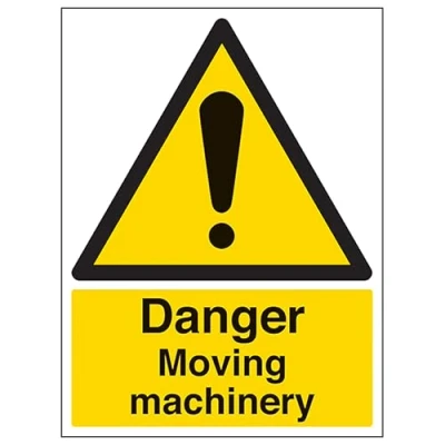 V Safety Danger Moving Machinery Portrait 200 x 300 mm Glow In The Dark Self Adhesive Vinyl Sign