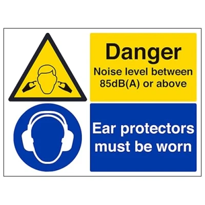 V Safety Danger Noise Levels 400 x 300 mm 2mm Rigid Plastic Sign