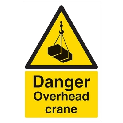 V Safety Danger Overhead Crane Portrait 200 x 300mm 2mm Rigid Plastic Sign