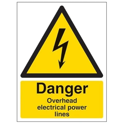 V Safety Danger, overhead electrical power lines 600x800mm 3mm Aluminium Composite With Anti Graffiti Coating & Fixing Channel Sign