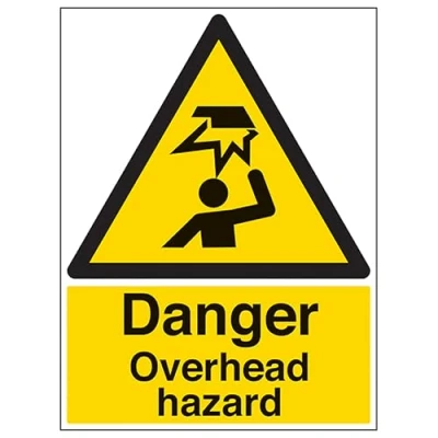 V Safety Danger Overhead Hazard Portrait 200 x 300mm 2mm Rigid Plastic Sign