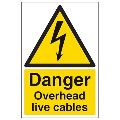 V Safety Danger Overhead Live Cables Portrait 200 x 300mm 2mm Rigid Plastic Sign