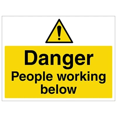 V safety Danger people working below 300x100 1mm Rigid Plastic sign