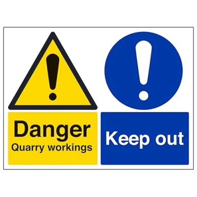 V Safety Danger Quarry Workings/Keep Out Large Landscape 400 x 300 mm Glow In The Dark Self Adhesive Vinyl Sign