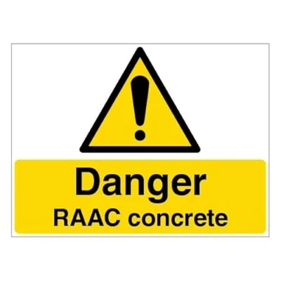 Warns about the presence of Reinforced Autoclaved Aerated Concrete (RAAC). Complies with Health and Safety Regulations and EN ISO 7010 standards. Alerts to risks in schools and hospitals where RAAC may pose hazards. Encourages proactive measures to avoid personal injury and enhance safety. Designed for high visibility and durability in various environments.