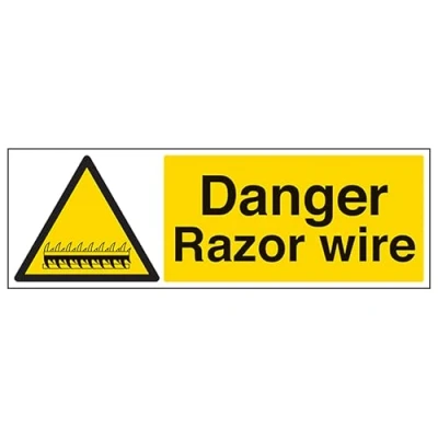V Safety Danger Razor Wire Landscape 450 x 150 mm 2mm Super Tough Rigid Plastic Sign