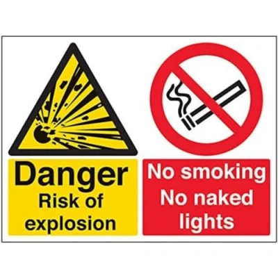 Helps to fulfil legal obligations to inform employees, visitors and the general public of potential hazards as per Health and Safety (Safety Signs & Signals) Regulations 1996 Conforms to EN ISO 7010:2012 - Warning signs feature a triangular symbol with a black pictogram and yellow background occupying at least 50% of the total sign area Landscape Orientation. Sign reads "Danger. Risk Of Explosion. No Smoking. No Naked Lights" Highly durable Self Adhesive Vinyl material and screen printed message will stand the test of time Sign measures 400 x 300mm. Self Adhesive material will adhere securely to most surfaces