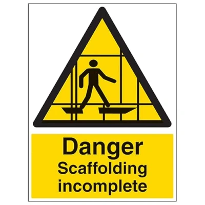 V Safety Danger Scaffolding Incomplete Portrait 200 x 300mm 2mm Rigid Plastic Sign