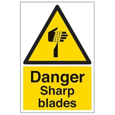 V Safety Danger sharp blades 400x600mm 2mm Rigid Plastic Sign