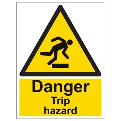 Helps to fulfil legal obligations to inform employees, visitors and the general public of potential hazards as per Health and Safety (Safety Signs & Signals) Regulations 2016 Conforms to EN ISO 7010: 2012 - Warning signs feature a triangular symbol with a black pictogram and yellow background occupying at least 50% of the total sign area Portrait Orientation. Sign reads "Danger. Trip Hazard" Printed on strong 2mm thick white High Impact Polystyrene (HIPS) plastic - ideal for outdoor use