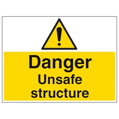 V Safety Danger Unsafe Structure Large Landscape 600 x 450 mm Glow In The Dark Self Adhesive Vinyl Sign