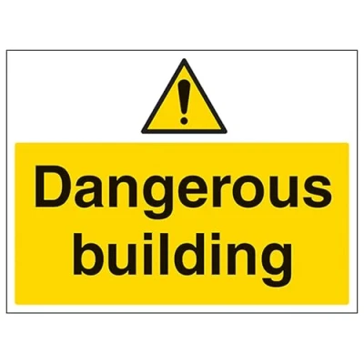 V Safety Dangerous Building Large Landscape 400 x 300 mm 2mm Rigid Plastic Sign
