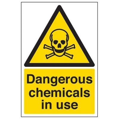 V Safety Dangerous Chemicals In Use Warning Sign 200mm x 300mm Self Adhesive Vinyl