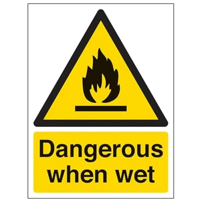 V Safety Dangerous When Wet Portrait 150 x 200 mm Glow In The Dark Self Adhesive Vinyl Sign
