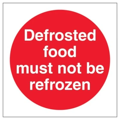 V Safety Defrosted Food Must Not Be Refrozen 100 x mm 2mm Super Tough Rigid Plastic Sign