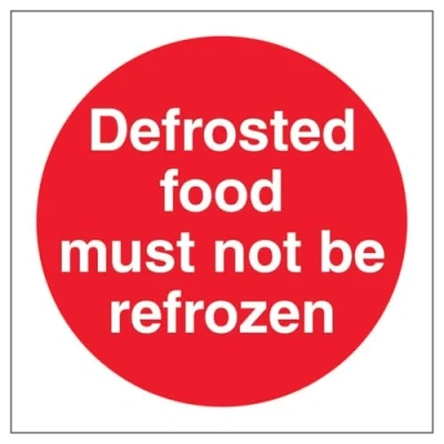 V Safety Defrosted Food Must Not Be Refrozen 100 x mm 3mm Aluminium Composite Sign
