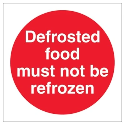 V Safety Defrosted Food Must Not Be Refrozen 100 x mm 3mm Brushed Aluminium Composite Sign