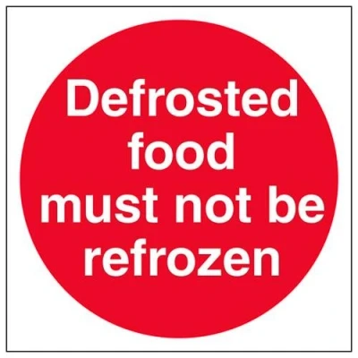 V Safety Defrosted Food Must Not Be Refrozen Sign 200mm x 1mm Rigid Plastic