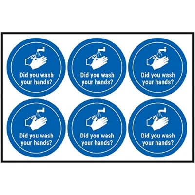 V Safety Did You Wash Your Hands? 100mm Diameter Sheet of 6 Stickers