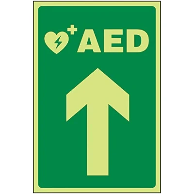V Safety Directional FA AED Arrow Up 300 x 400 mm GITD Rigid Plastic Sign