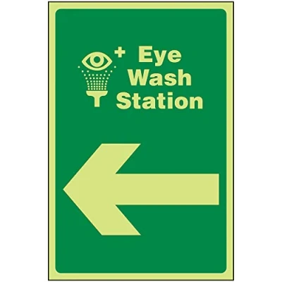 V Safety Directional FA Eye Wash Station Arrow Left 200 x 300 mm GITD Adhesive Vinyl Sign