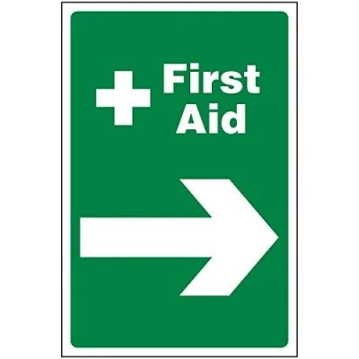 V Safety Directional FA First Aid Arrow Right 300 x 400mm Self Adhesive Vinyl