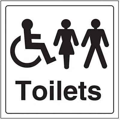 Square Orientation. Sign reads "Toilets" Highly durable 1mm plastic material and screen printed message will stand the test of time Sign measures 150 x 150mm 0 0