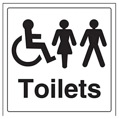 AmazonSquare Orientation. Sign reads "Toilets" Highly durable 1mm plastic material and screen printed message will stand the test of time Sign measures 200 x 200mm 0 0