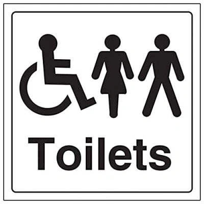 Helps to provide directions to facilities on your premises Conforms to EN ISO 7010:2012 Square Orientation. Sign reads "Toilets" Highly durable and heavy duty 2mm rigid plastic material Sign measures 200 x 200mm