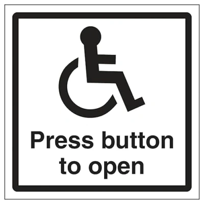 V Safety Disabled Press Button To Open 150 x mm Glow In The Dark Self Adhesive Vinyl Sign