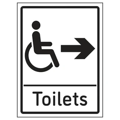 V Safety Disabled Toilets Arrow Right 150 x 200 mm 2mm Super Tough Rigid Plastic Sign