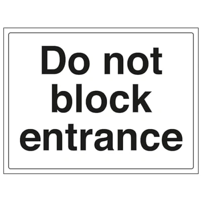 V Safety Do Not Block Entrance 300 x 200 mm 2mm Rigid Plastic Sign