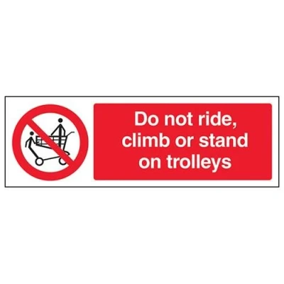 V Safety Do Not Stand, Ride Or Climb On Trolleys Sign 300mm x 100mm 1mm Rigid Plastic