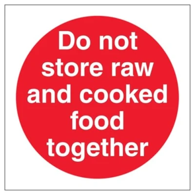 V Safety Do Not Store Raw And Cooked Food Together 100 x mm 2mm Rigid Plastic Sign