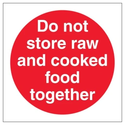 V Safety Do Not Store Raw And Cooked Food Together 100 x mm 3mm Brushed Aluminium Composite Sign