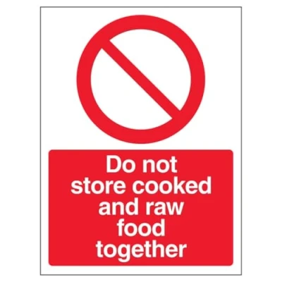V Safety Do Not Store Raw And Cooked Food Together Portrait 200 x 300 mm 2mm Super Tough Rigid Plastic Sign