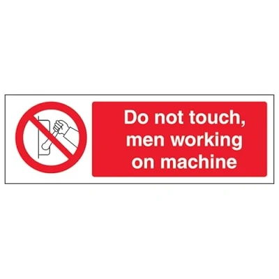 V Safety Do Not Touch Men Working On Machine Landscape 300 x 100 mm Glow In The Dark 1mm Rigid Plastic Sign