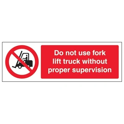 V Safety Do Not Use Forklift Without Supervision 300 x 100 mm Glow In The Dark Self Adhesive Vinyl Sign
