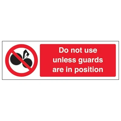 V Safety Do Not Use Unless Guards Are In Position Landscape 300 x 100 mm 2mm Super Tough Rigid Plastic Sign
