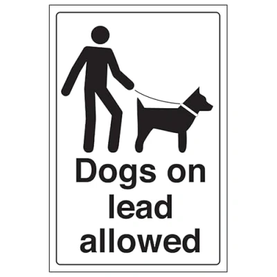 V Safety Dogs On Lead Allowed 200 x 300 mm 2mm Super Tough Rigid Plastic Sign