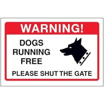 V Safety Dogs Running Free, Please Shut The Gate Sign 150mm x 100mm Self Adhesive Vinyl