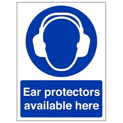 V Safety Ear Protection Available Here Portrait 150 x 200mm 2mm Rigid Plastic Sign