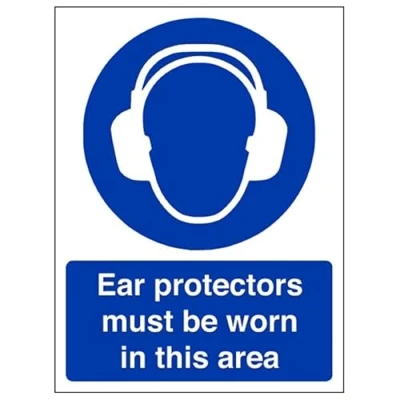 V Safety Ear protectors must be worn in this area 450x600 Self Adhesive Vinyl Sign