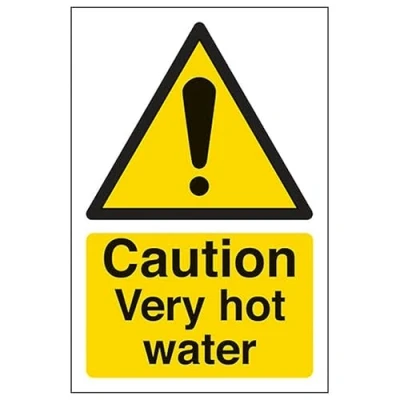V Safety Eco Friendly Caution Very Hot Water Portrait 200 x 300 mm 1mm 100% Recycled Rigid Plastic Sign